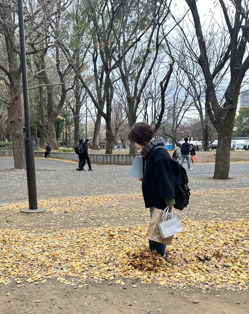 イチョウの葉っぱがたっぷりある場所へ。